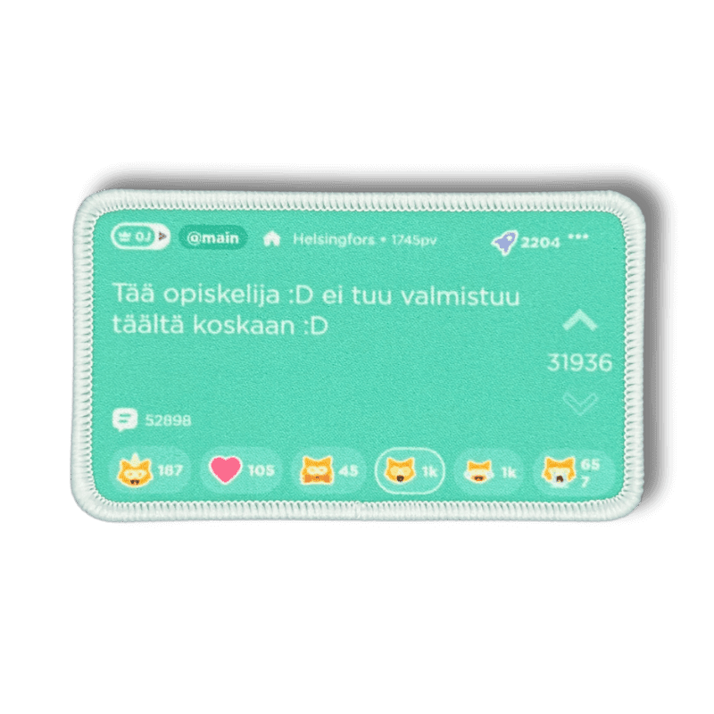 Tuotamme kangasmerkit ainejärjestöille, yrityksille ja kaikenkokoisille yhdistyksille. Pyydä tarjous!